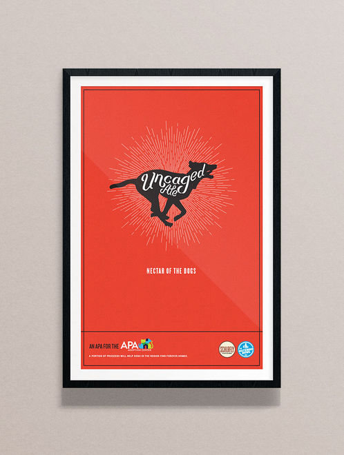 Each can of Uncaged Ale features one of six distinct dog silhouettes to underscore the many needs addressed by the APA. Because they travel in packs of four, you may never take home the same group twice. (But we do encourage you to try.)